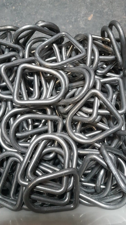 Nämä SA:n kookkaammat D-renkaat ovat kokoisekseen melko keveät, sillä materiaali on ilmeisesti alumiiniseosta/tms. kevytmetallia. Renkaan mitat ovat n. 46mm x 41mm ja renkaan varren paksuus on n. 5mm. Käyttökohteena lienee kokonsa puolesta ollut valjas/reppu/rinkka/tms. -osasto. Yksittäinen D-rengas painaa n. 6,5g. Kovasti laatuisaa ja kestävää (SA-)kamaa.