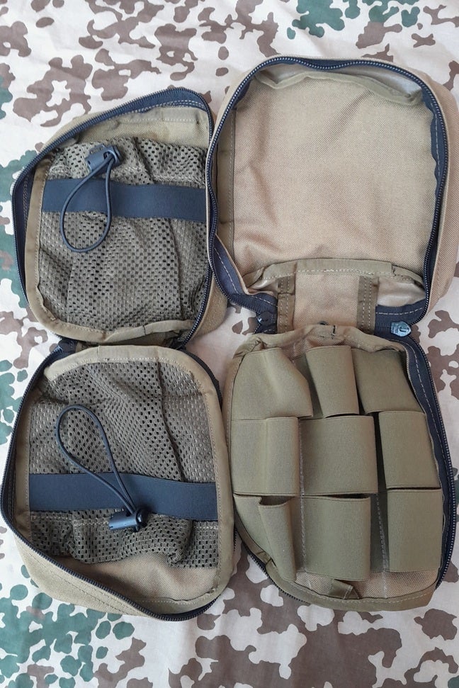Ensiaputaskun takapinnassa on kaksi MOLLE/PALS-yhteensopivaa, nepparillista, jäykistettyä kiinnityshihnaa ja kaksi riviä MOLLE-kiinnitysluuppeja. Taskun päällipinnassa on kolme riviä MOLLE-kiinnitysluuppeja ja taskun pohjassa on vedenpoistoaukko. Taskun materiaali on erittäin korkealaatuista, khakinväristä 1000D Corduraa ja kaikki nippelit & vetoketjut samaa laatuluokkaa.