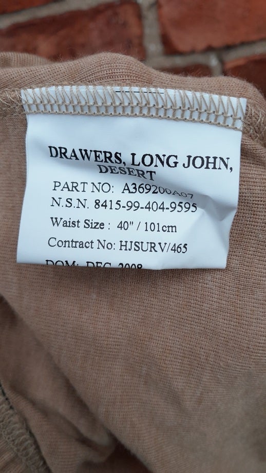 Brittikontaktimme löysi meille pienen lastin uudenveroisia, Brittiarmeijan aavikkosävyisiä, palosuojattuja pitkiä alushousuja!