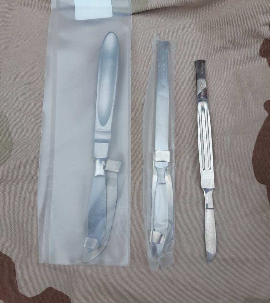 Tsekkien poistolaareista löytyi muutama pussi uudenveroisia Tsekkiarmeijan lääkintä skalpelleja!